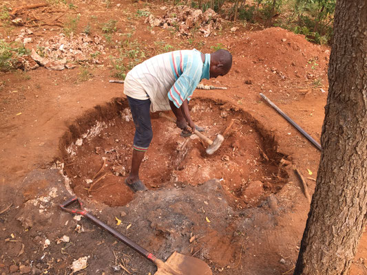In the meanwhile the fundi was working hard to dig step by step into the earth partly covered with stones.