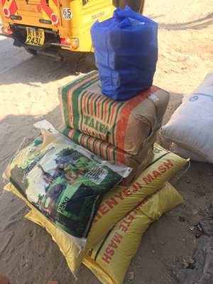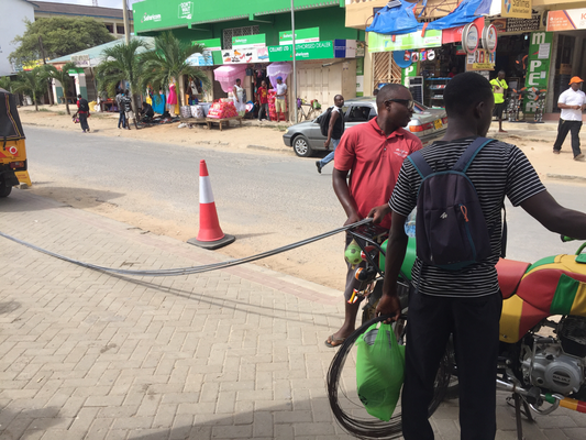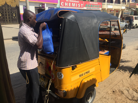 Only two more days left we wanted to make the most out of them, so tried to start really early today. We had arranged that our motor bike driver pikes us up at 8:30am to take us directly to the village to see if the new fundis were doing their job and if everything else was fine. Shortly after seeing that they were proceeding we left for to go to the school, but neither the nursery was open to see our new kids we were supporting now nor the head master was available to get the receipts, so we took of to the hardware store in town to get the rest for Mamarehema. We got our things really quickly since the owner Taher, we met the previous night, had already prepared everything. We took the materials by motor bike to Mamarehema‘s place and sat a while with her.