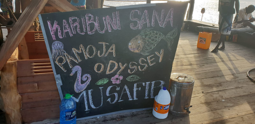 Natascha stayed in the Backpackers, not feeling well, so I took Edison down to the beach where we took a small boat to the Musafir. On board we couldn’t believe with how much effort and love this boat was built the past 7 years. Paolo the boat owner has been living in Kenya for the past few years and together with the help of sailors from Lamu island built this boat, finished it recently and brought it to Kilifi coast. When Alex met Paolo in 2017, they decided to create a very special project together. A journey from Kilifi to Tanzania, devided into different parts. Each part includes 3-4 days on land to capture local stories from people and communities, filmed and edited and shown on a separately organized film festival at the end of these land days. After the festival the boat takes off to sail 2 days to the next location and the project continues the same way. I decided immediately to join them on 28th of January in Zanzibar.