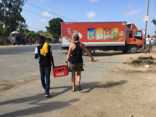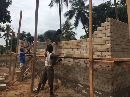 After we had agreed with Robin, that we could get the additional 500€ to complete what we had started, we started the tour: order cement at hardware store, go food shopping, take food to Mamarehema, back to hardware, load cement on truck, drive past soda store for drinks for the kids, unload cement in village while bricks were delivered at the same time and we gave the kids the drinks. What a day!