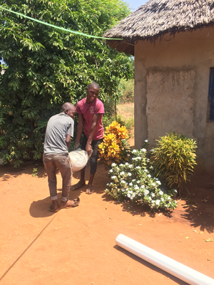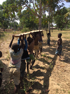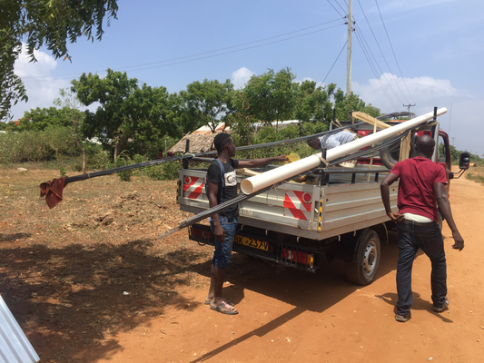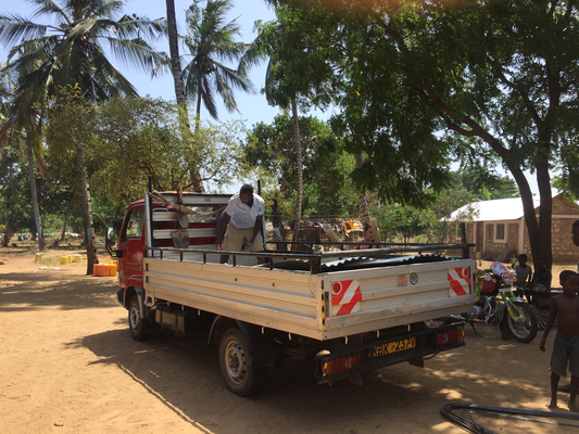 This morning Edison was on time and we left at ten o’clock for to get the materials at the hardware store and sursprisingly worked out well. After one hour we left with a transporter towards Mamarehemas house. There we left the big parts and went off to the village to drop off the rest.