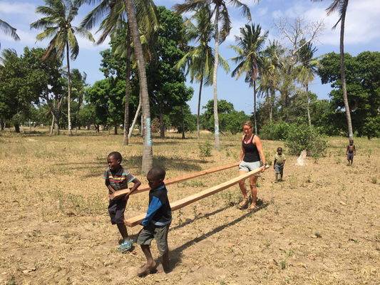 We discovered that the walls weren’t as far as we thought and they still hadn’t continued with the chicken farm because bricks weren’t enough. Asking for where we could get more bricks from Edison told us about having not received the money for them. One new message after another and so we tried to speed up where we could. So we carried the newly cut logs from palm trees to the construction site, also the rest of the bricks. All the kids were helping and enjoyed working with us. Inbetween we also fixed a swing and finally cropped the wooden logs for the windows to then nail them to a frame. After a long exhausting day, reviewing the progress we decided to not finish the chicken farm and concentrate on the house. We told Edison and then went off to the Backpackers.