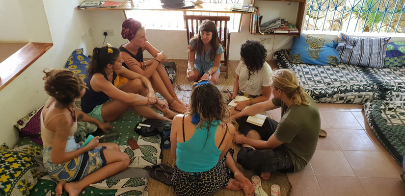 After a really long flight from Istanbul to Mombasa with two our delay we arrived at 7 am in our Backpackers lodge in Kilifi town 1 hour North of Mombasa, exhausted and tired. Although the reception didn’t open until 9am, we used the time to relax on the terrace with a bit of breakfast. Finally we could move into our house, large room with a double bed and bunk beds. Outside the house were the amazing washing rooms - well not rooms, more a garden - with a shower in the middle of bamboo trees and a toilet house out of wood...all for ourselves!